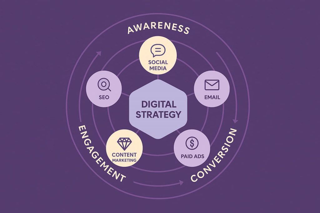 A marketing strategy isn’t your Instagram posts or email campaigns – it’s the master blueprint that determines which battles you fight and why. Think of it as your GPS coordinates before you even turn on the engine.
