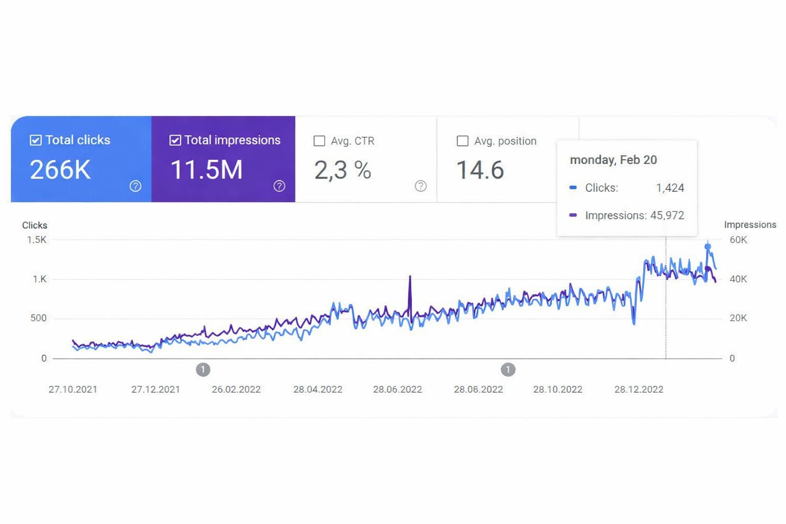 Daily organic traffic increased 9x: from 155 to 1, 424 visits