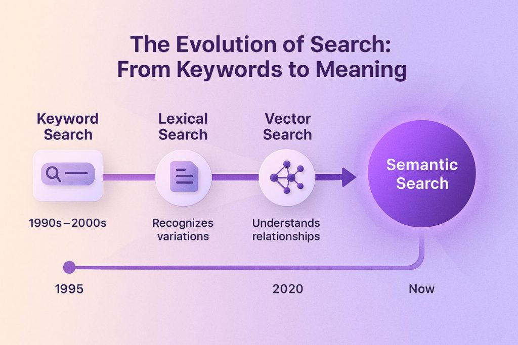 The main distinction between keyword search and semantic search lies in interpretation. Keyword-based systems depend on exact matches, while meaning-based search engines analyze intent and relationships between words. In practice, shifting from keyword to semantic search leads to more comprehensive, contextually relevant results that align better with how users naturally phrase queries.