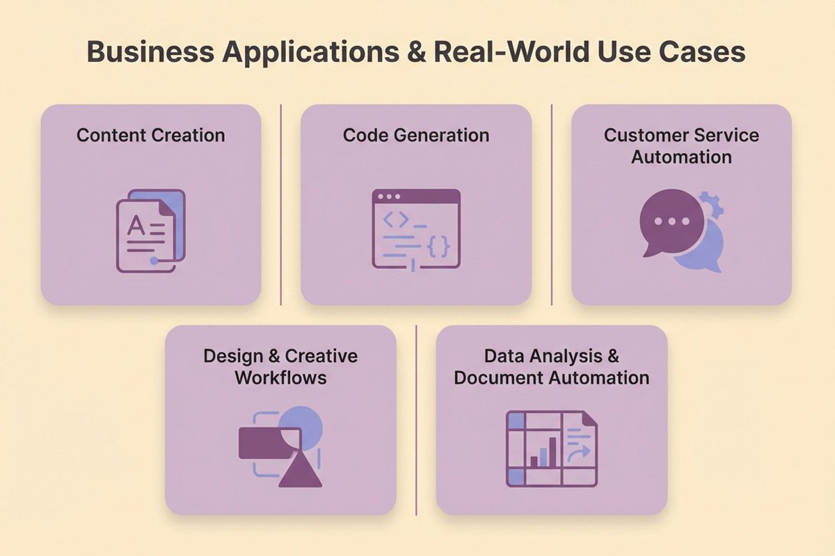 Design and Creative applications generate product mockups, marketing variations, and A/B testing materials in minutes rather than days. Designers iterate faster, testing more concepts before committing resources to production.