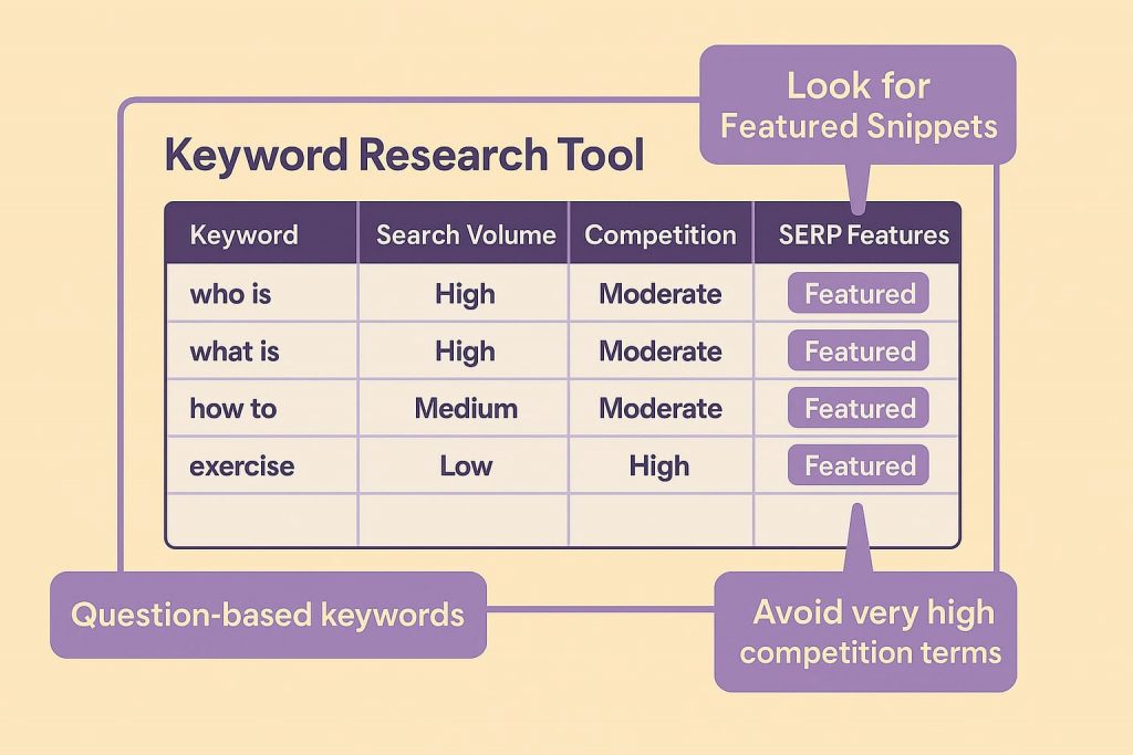 Gather keywords using autocomplete, People Also Ask, and third-party tools. Evaluate by volume, competition, and intent. Queries starting with “what is,” “how to,” or “why does” often trigger snippets. Prioritizing these aligns content with user search behavior — and how Google rewards clarity.