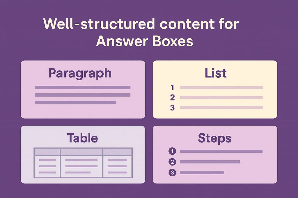 Behind every effective Google Answer Box result lies strong technical SEO. Even the clearest content can miss out if it isn’t supported by clean code and structured signals. Using schema markup and structured data helps Google interpret context, while correct HTML formatting ensures content is easy to parse. Answer targeting also depends on site performance: fast load times and mobile-friendly layouts help search engines surface your content. In practice, sites that refine technical details often see greater consistency in snippet wins, proving that back-end work is just as important as front-end clarity.