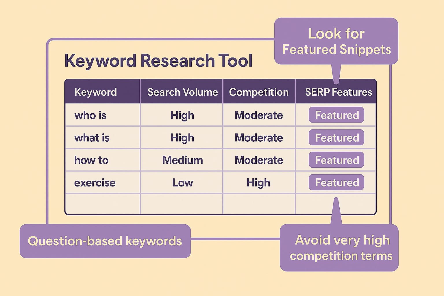 Gather keywords using autocomplete, People Also Ask, and third-party tools. Evaluate by volume, competition, and intent. Queries starting with “what is,” “how to,” or “why does” often trigger snippets. Prioritizing these aligns content with user search behavior — and how Google rewards clarity.