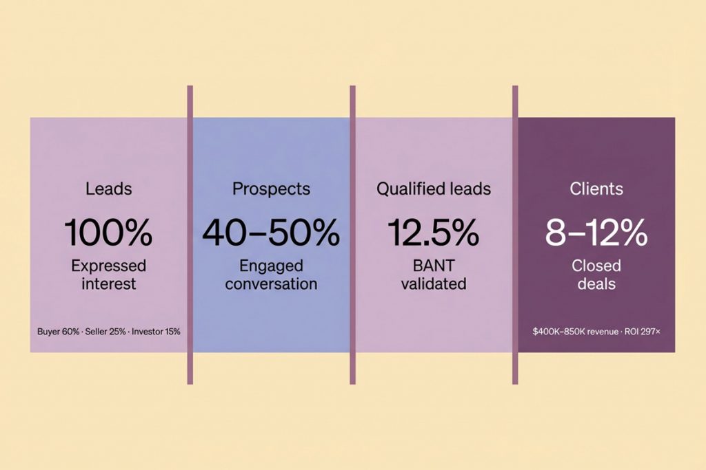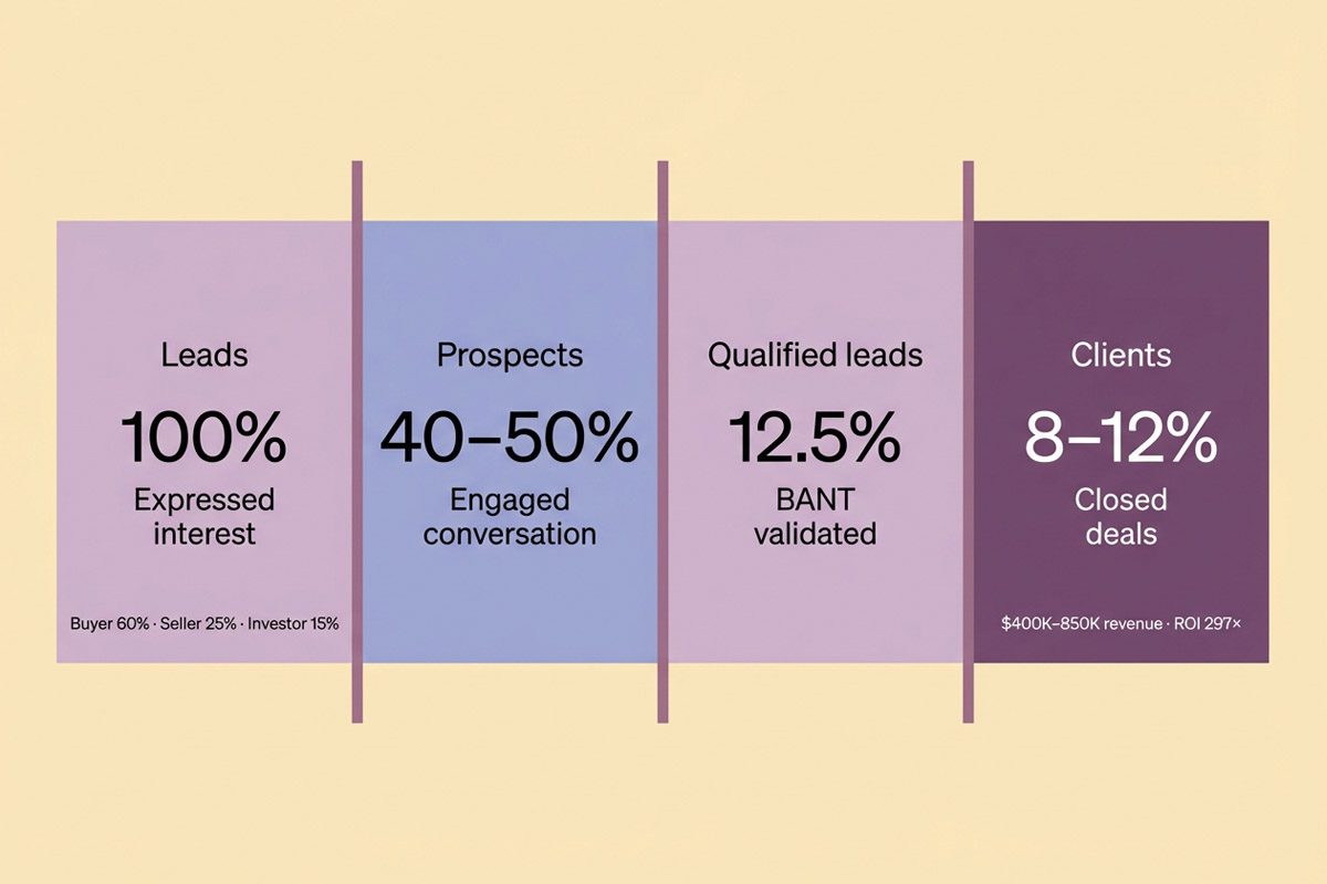 • Pipeline Predictability: 25-35 qualified leads monthly = 8-12 closings = consistent $400K-850K revenue