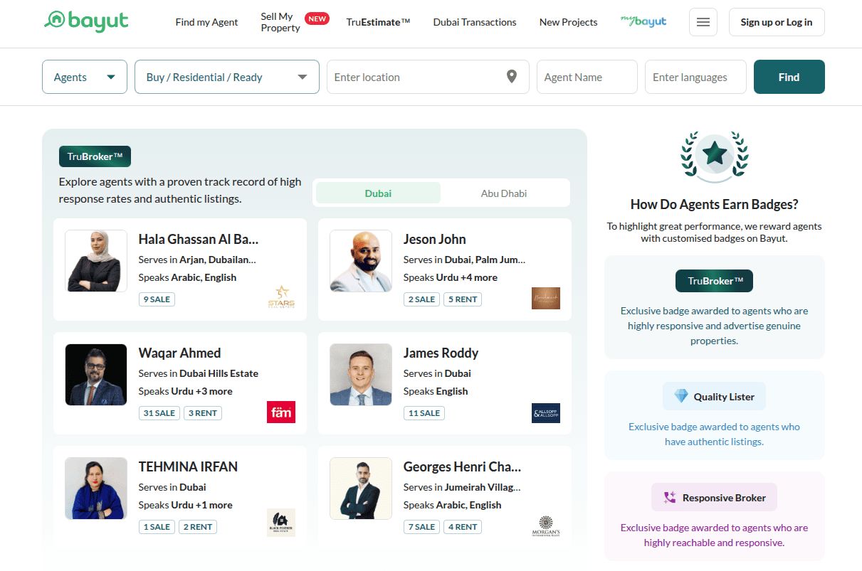 | Bayut | 90K+ | 12+ | 4.6/5 | TruCheck™ | First-time buyers, off-plan investors |