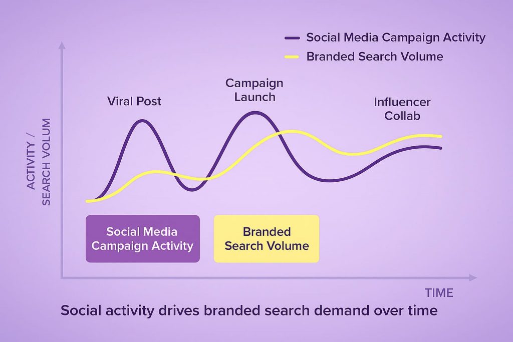 People can’t search for brands they’ve never heard of. Social media solves this discoverability problem by introducing your brand to audiences who wouldn’t find you through search alone. As brand awareness grows, so does the volume of branded searches—direct queries for your company name, products, or unique offerings.