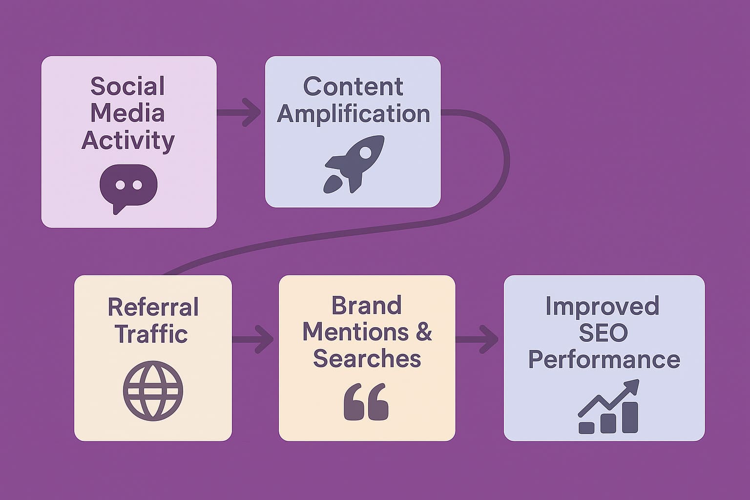 These pathways create compounding effects. A single piece of content shared across social channels can trigger a cascade: social engagement leads to website traffic, quality traffic reduces bounce rates, visitors share the content, bloggers discover and link to it, and increased authority improves rankings for competitive keywords. Each element reinforces the others in a cycle that builds momentum over time.