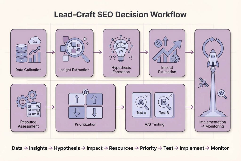 Converting insights into strategies requires systematic prioritization and testing. One manufacturing client implemented technical fixes, content enhancements, and link building simultaneously based on data analysis—organic traffic increased 156% in four months. Systematic testing validates changes before full deployment, reducing implementation risks.
