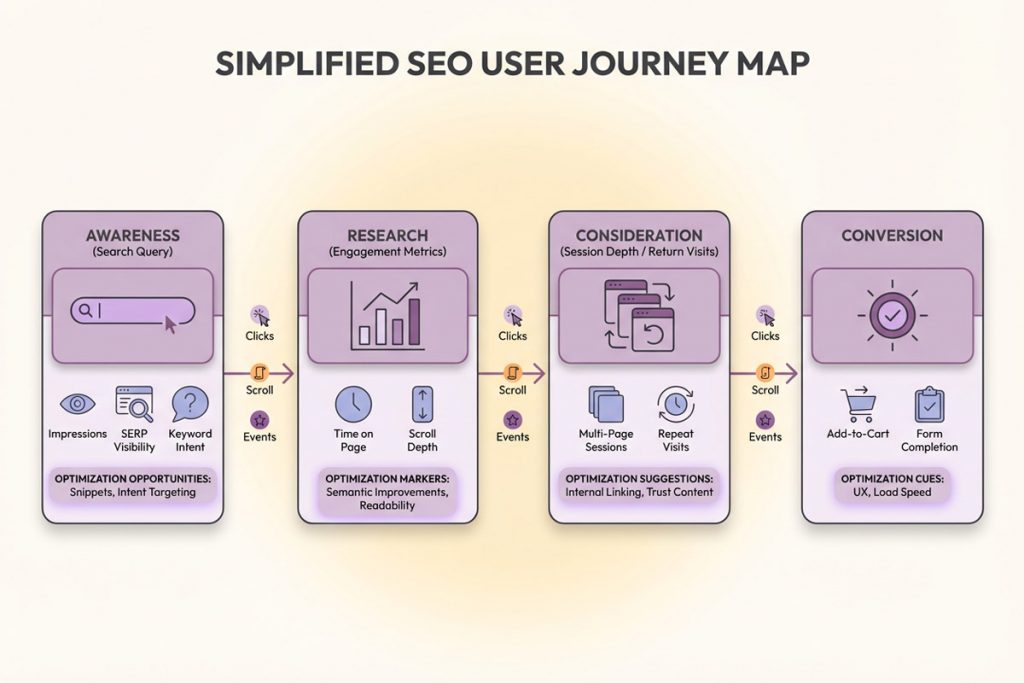 User behavior analysis connects web analytics behavioral data with search intent signals. NLP bridges behavior patterns with intent classification. One software company discovered that visitors from “how to” queries engaged deeply but rarely converted—insight that shifted content strategy toward comparison-intent keywords with better conversion characteristics.