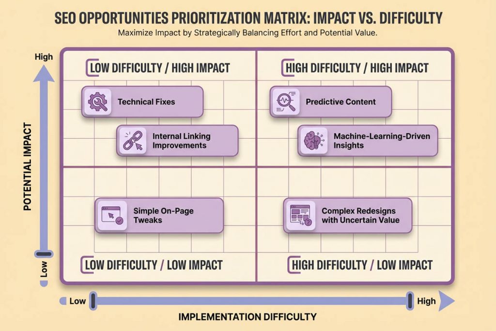 Machine learning enables proactive algorithm adaptation. Rather than reacting after Google updates cause traffic drops, data science approaches detect pattern shifts in rankings, click-through rates, and SERP features that signal algorithmic changes before official announcements. Monitoring systems track hundreds of keywords across multiple metrics simultaneously—work impossible through manual observation.