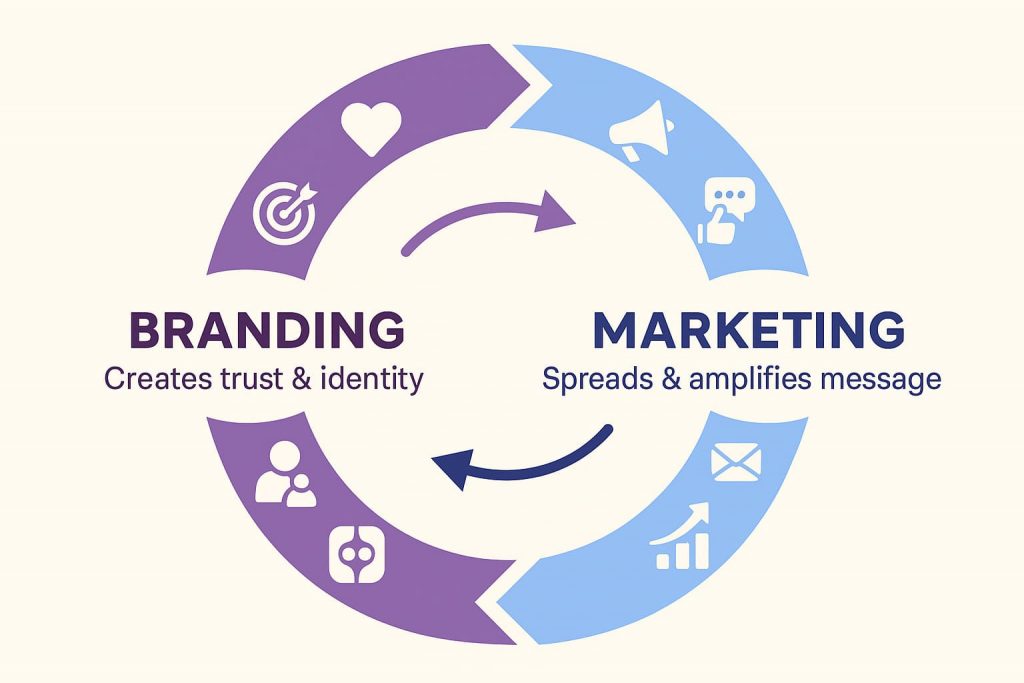Branding and marketing aren’t competitors for your budget — they’re dance partners that make each other look good. Your brand provides the foundation that makes your marketing believable, while your marketing activities reinforce and spread your brand message. It’s a symbiotic relationship that, when properly aligned, creates exponential results.