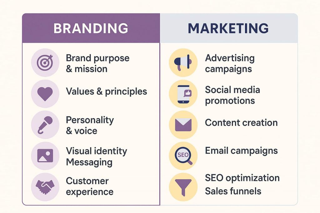 Marketing is what you do; branding is who you are. That distinction might sound simple, but it’s profoundly important for how you allocate resources and make strategic decisions.
