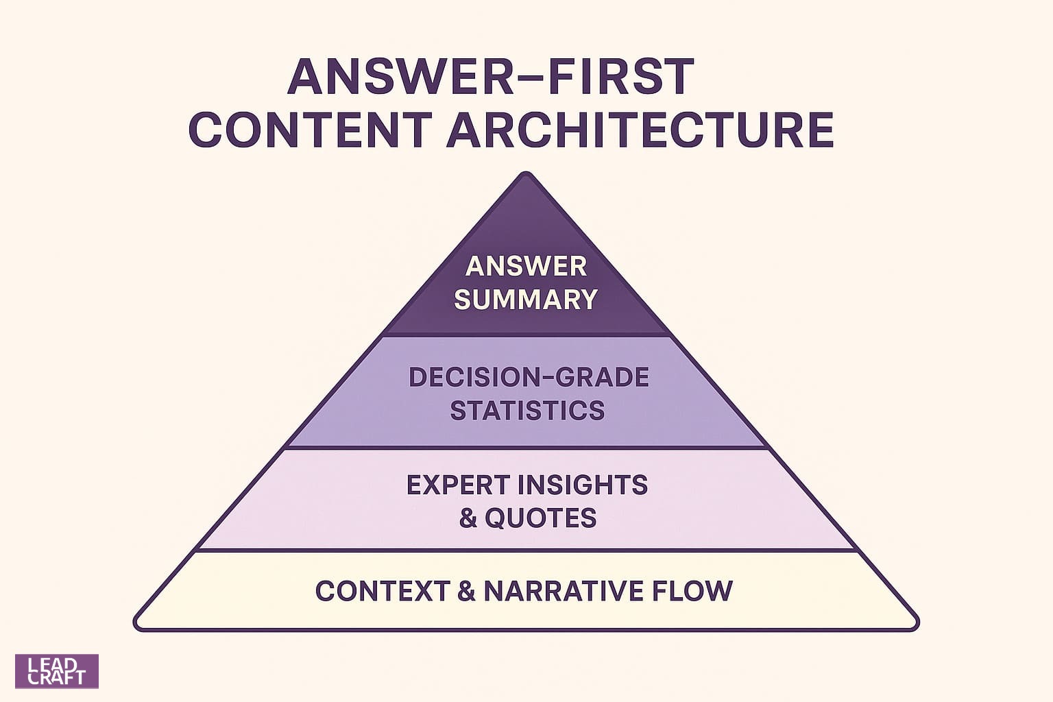 Companies excel in AI citation competitions when their content architecture prioritizes answer-first design. Every content piece should be created based on entity research and contain extractable definitions, decision-grade statistics, and quotable expert insights that function independently of surrounding context. This approach recognizes that AI systems often extract snippets without broader article context.
