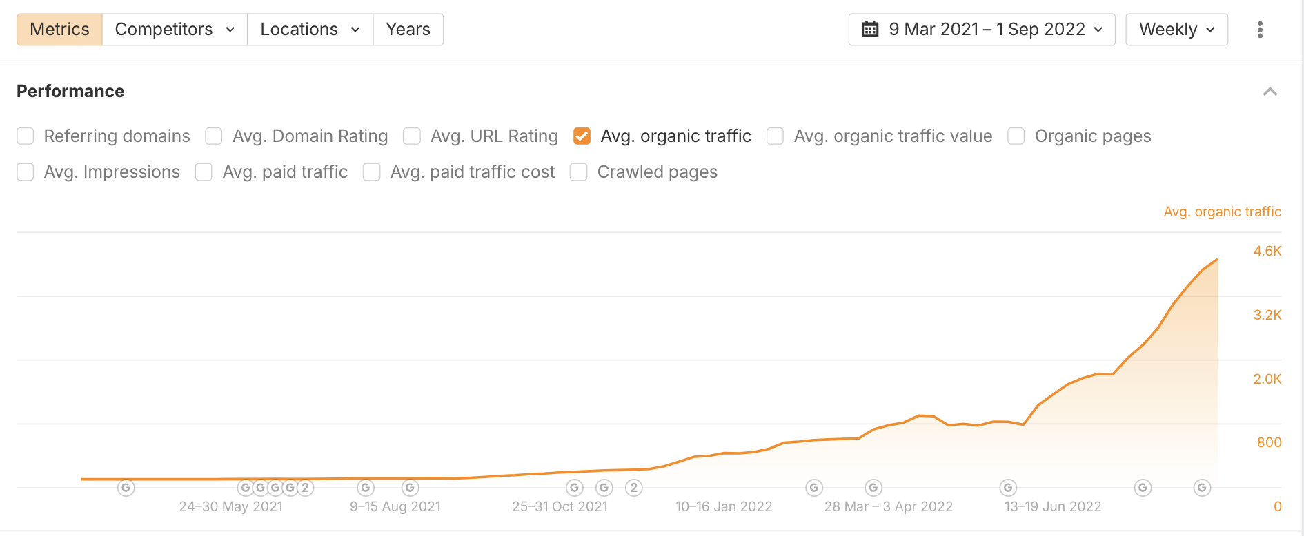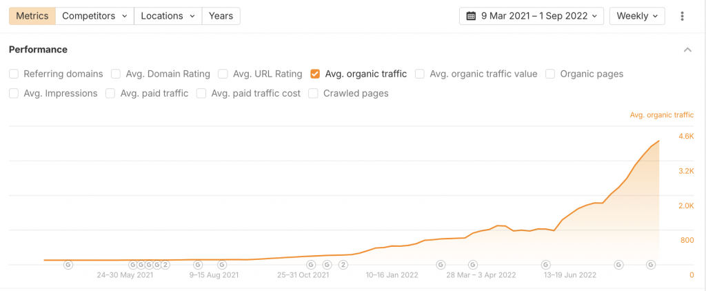 Organic website traffic increased tenfold, from 458 to 4, 630 monthly visits.