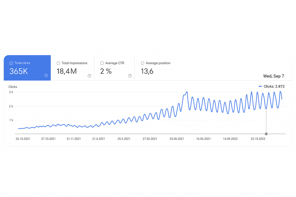 Website traffic grew 100x in one year, with daily clicks increasing from 29 in September 2021 to 2, 872 in September 2022.